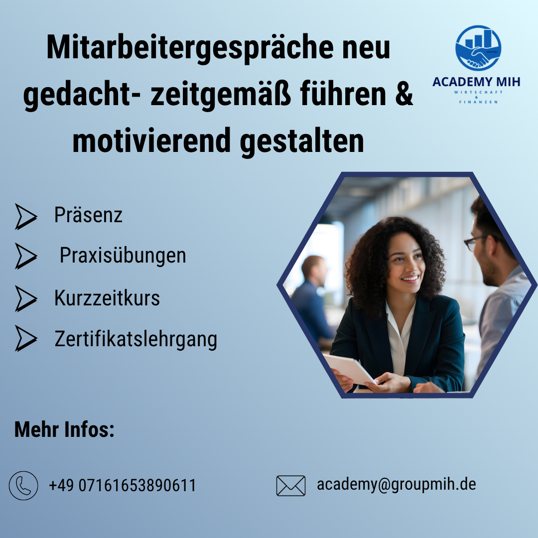 In diesem Kurs lernen Führungskräfte, Mitarbeitergespräche modern, wertschätzend und wirksam zu gestalten. Statt formaler Routine steht der Mensch im Mittelpunkt: Es geht darum, Kommunikation auf Augenhöhe zu fördern, Motivation zu stärken und Entwicklungspotenziale gezielt zu nutzen. Die Teilnehmenden erfahren, wie sie Gespräche strukturiert vorbereiten, konstruktives Feedback geben und gemeinsam mit Mitarbeitenden Ziele formulieren, die wirklich motivieren. So werden Mitarbeitergespräche zu einem Instrument der Bindung, Entwicklung und Führung auf moderne Weise.